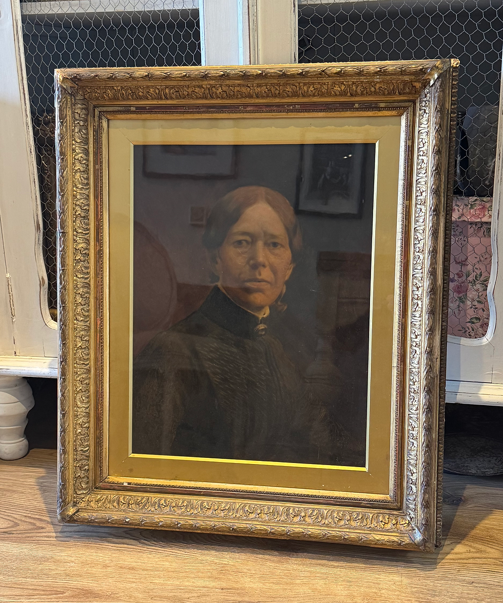Large Antique Oil Painting Female Figures by a Thatched Cottage’ Signed Gozzard